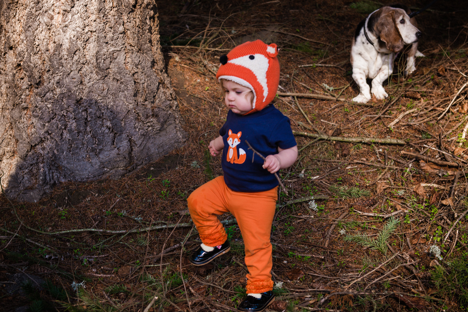 Riley the Fox with her hound cousin Chester