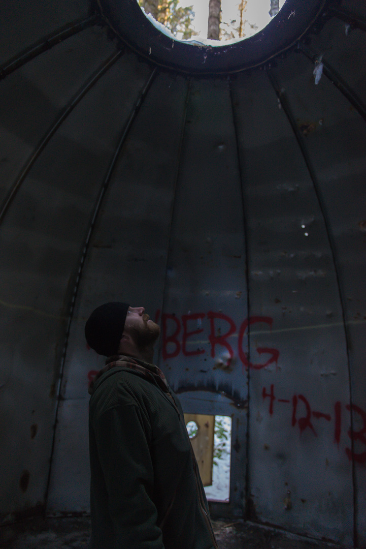 Devin staring out of the whole in one of the Gnome Domes January 3, 2016 • 721 × 1080 • Snowshoeing & Gnome Domes
