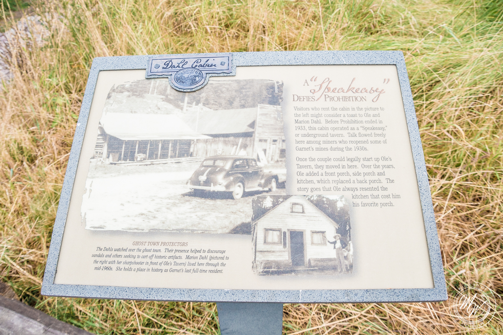 In 1934 when President Roosevelt raised gold prices from $16 to $32 an ounce, Garnet revived. A new wave of miners moved into abandoned cabins and began re-working the mines and dumps. Then, World War II drew the population away again. The use of dynamite for domestic purposes was curtailed, making mining difficult. Garnet again became a ghost town. Once again F. A. Davey and a few others remained.”