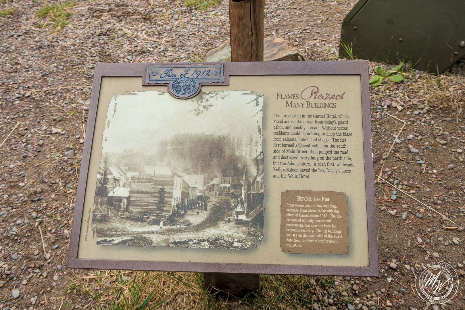 According to the website garnetghosttown.org: “After 1900 many mine owners leased their mines out, the gold having become scarcer and harder to mine. The Nancy Hanks yielded about $300,000 worth of gold, and an estimated $950,000 was extracted from all the mines in Garnet by 1917, but by 1905, many of the mines were abandoned and the town’s population had shrunk to about 150. A fire in the town’s business district in 1912 destroyed may commercial buildings, most remaining residents moved away to defense-related jobs. By the 1940’s, Garnet was a ghost town. Cabins were abandoned, furnishings included, as though residents were merely vacationing. F.A. Davey still ran the store however, and the hotel stood intact.