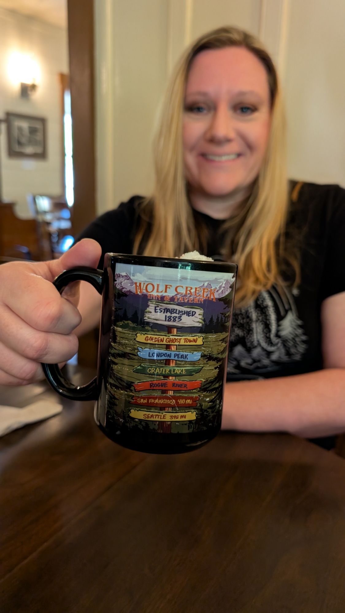 First stop on our adventure today was at the historic Wolf Creek Inn and Tavern where we fueled up with a delicious breakfast. Wolf Creek Inn, originally built in 1883 as Wolf Creek Tavern for local merchant Henry Smith, is the oldest continuously operated hotel in the Pacific Northwest. It served miners and stagecoach travelers before the railroad arrived in 1887.